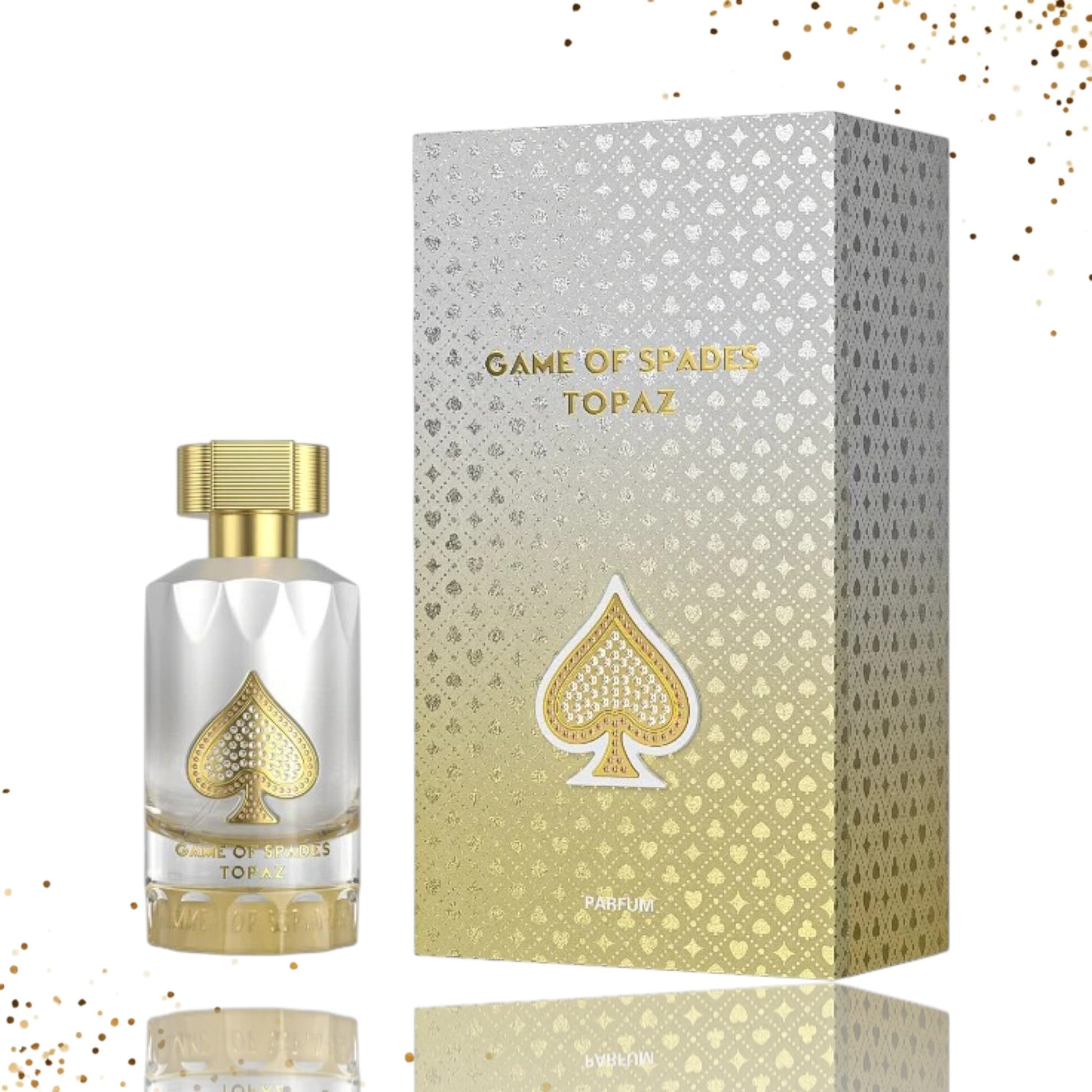 In the dry-down, Game of Spades Topaz becomes silky and addictive. White musk and pink musk create a smooth, powdery warmth, while white sandalwood adds subtle depth and elegance. The result is a scent that feels pure, feminine, and effortlessly luxurious.