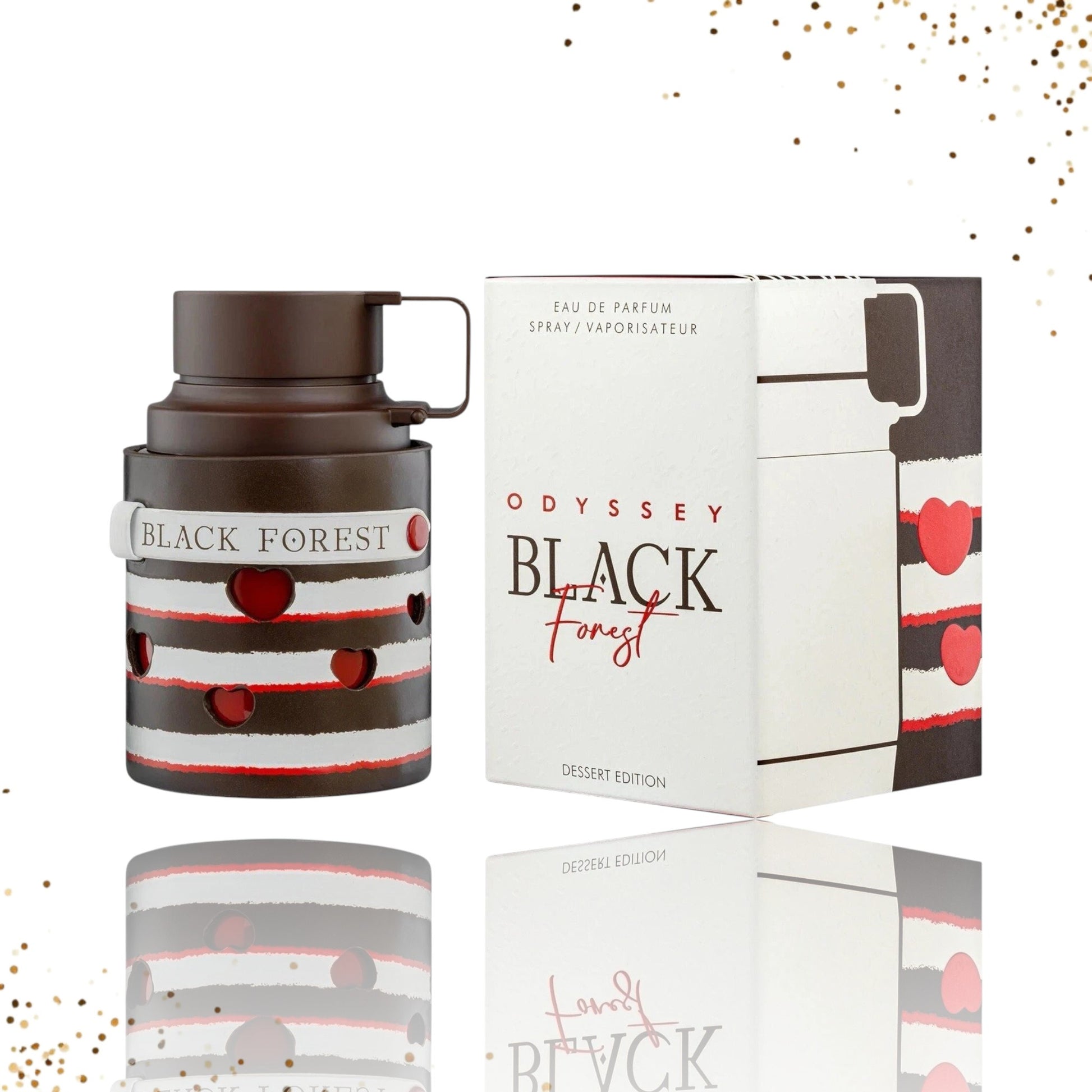 ARMAF’s Odyssey Black Forest is a decadent plunge into gourmand indulgence. Designed for both women and men, this luxurious Eau de Parfum captures the essence of a rich, fruity-oriental dessert—where opulence, warmth, and sweetness blend seamlessly into one unforgettable fragrance experience.
