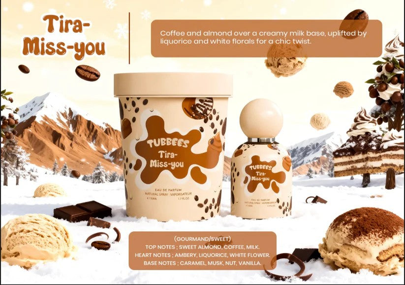 Tubbees Tira Miss You is a sophisticated gourmand delight — cozy yet refined, creamy yet sensual. Perfect for those who crave a fragrance that feels like a sweet embrace with a chic, modern twist.